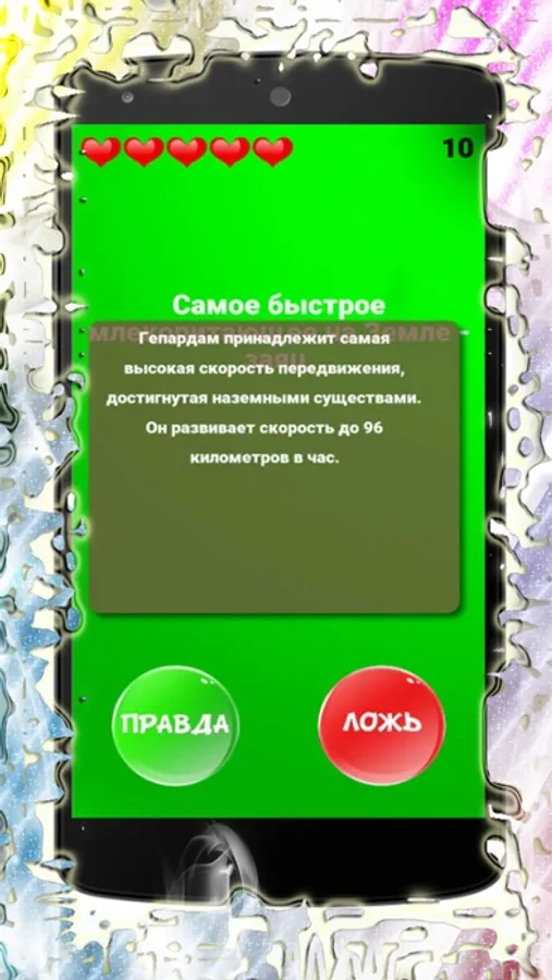 Правила игры Правда или Ложь очень просты. У тебя в запасе будет 5 жизней, которые помогут тебе, если ты ответишь неправильно. Каждые 10 правильно отвеченных вопросов возвращают тебе потеряную жизнь.