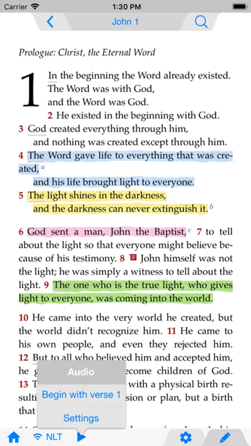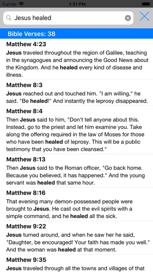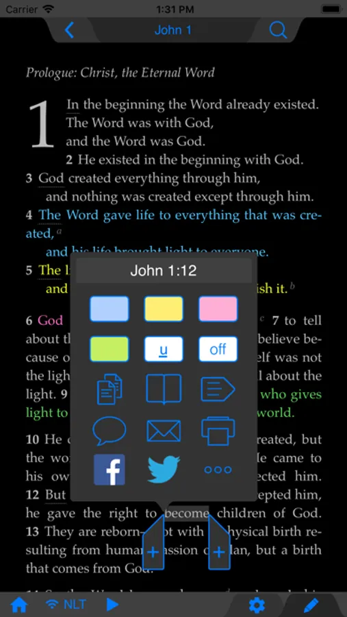 - Full-text search by OT, NT or current book allows users to quickly find words and study topics