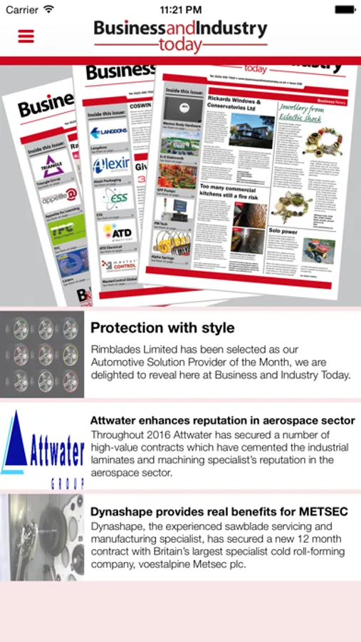 Business and Industry Today is a multi-media digital magazine which circulates directly to 25,000 targeted businesses per issue, and is downloadable from multiple digital news stands and via social media Twitter, LinkedIn and our iOS app.