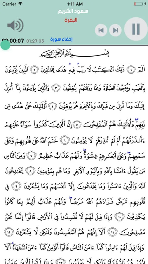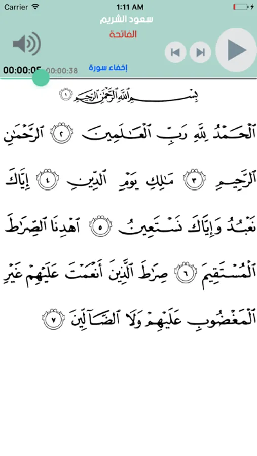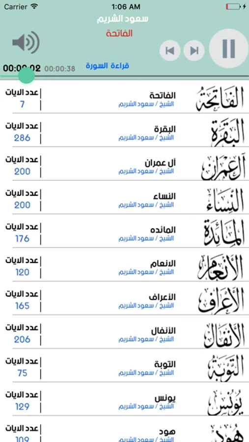 - التنقل بين السور من داخل مشغل الوسائط الانتقال التلقائي للسورة التالية.