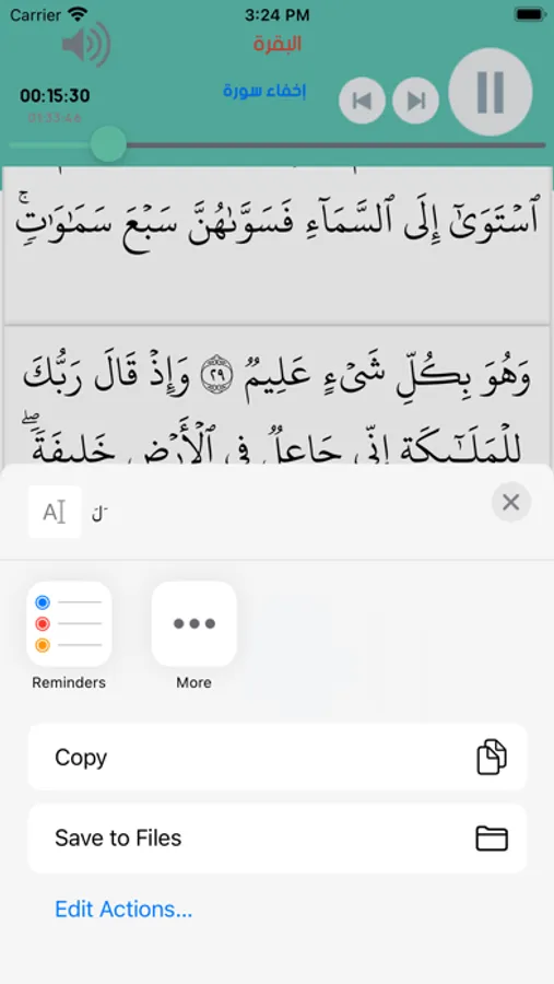 مشاركة الايات اصبح امرا سهلا في تطبيق القرآن المجاني من خلال تصفحك للسورة في التطبيق يمكنك مشاركة الاية المراد نشرها علي وسائل التواصل الاجتماعي.
