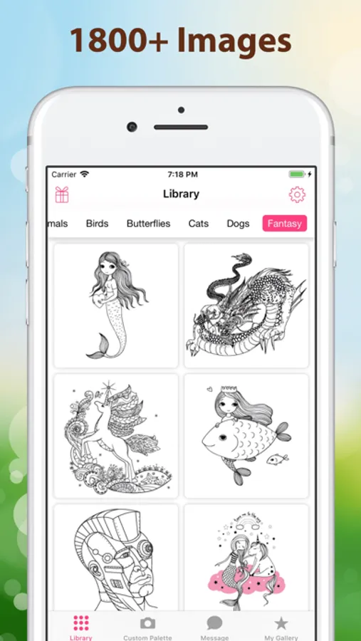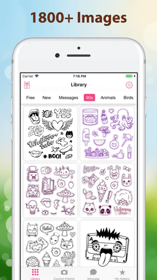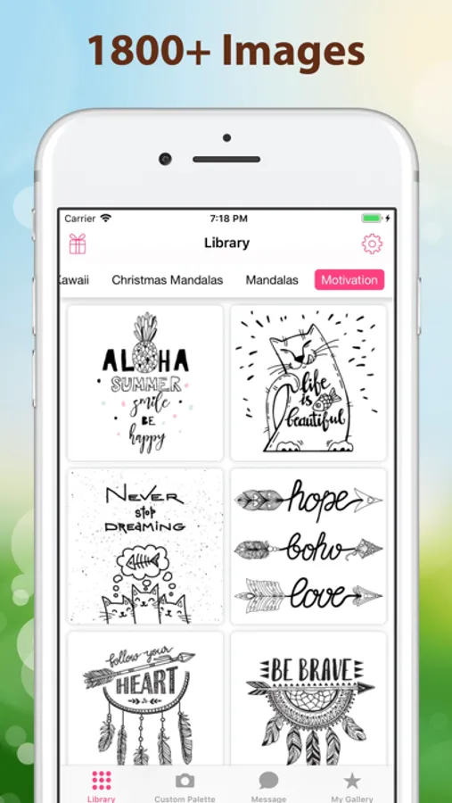 Pick from hundreds of coloring pictures, motivating messages and phrases from dozens of categories.