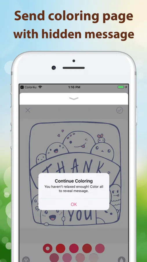 It is an app that allows you to send a coloring page with a message that is revealed only to the receiver after they color the picture attached to the message.