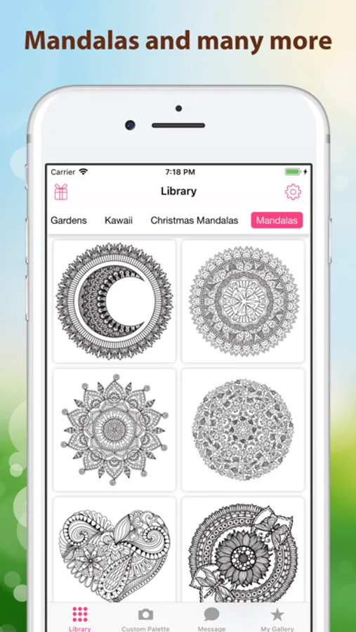 • Coloring pages in 20+ Categories. Mandalas, Zen, cute animals, gardens, floral, patterns, flowers, retro 90s and more!
