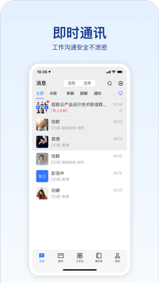 [高效沟通]支持单聊、群聊和密聊,消息类型丰富化,消息已读未读一目了然。