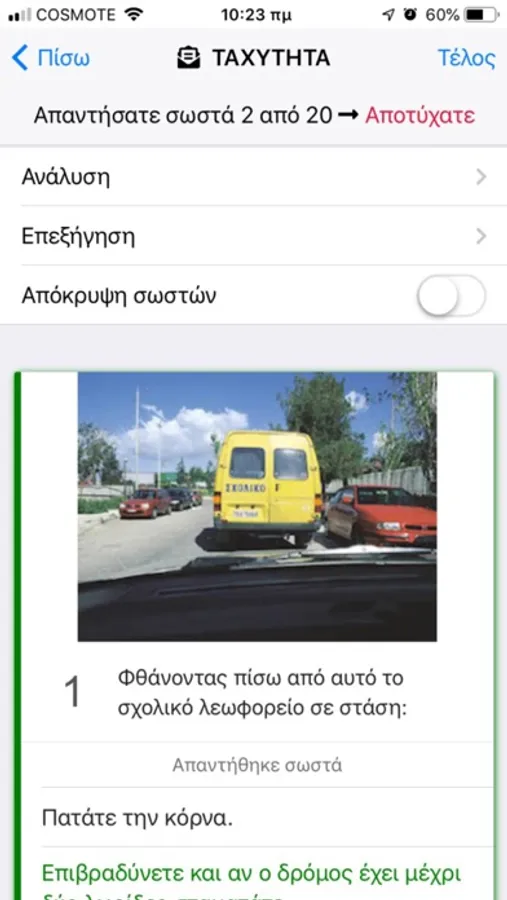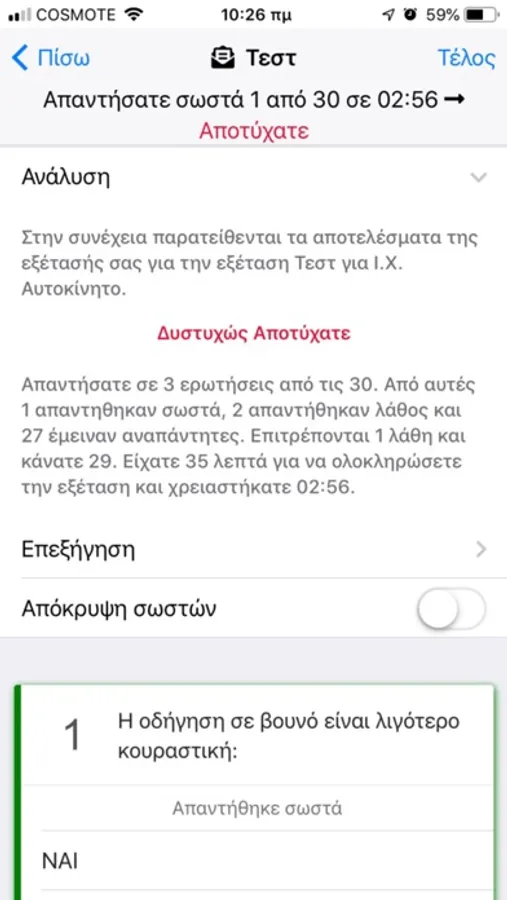 Σας επιτρέπει να πραγματοποιήσετε την εξέταση όπως θα ήταν η πραγματική (μετρώντας τον χρόνο). Έπειτα σας δείχνει τα αποτελέσματα και τις σωστές απαντήσεις στις ερωτήσεις που απαντήσατε λάθος.