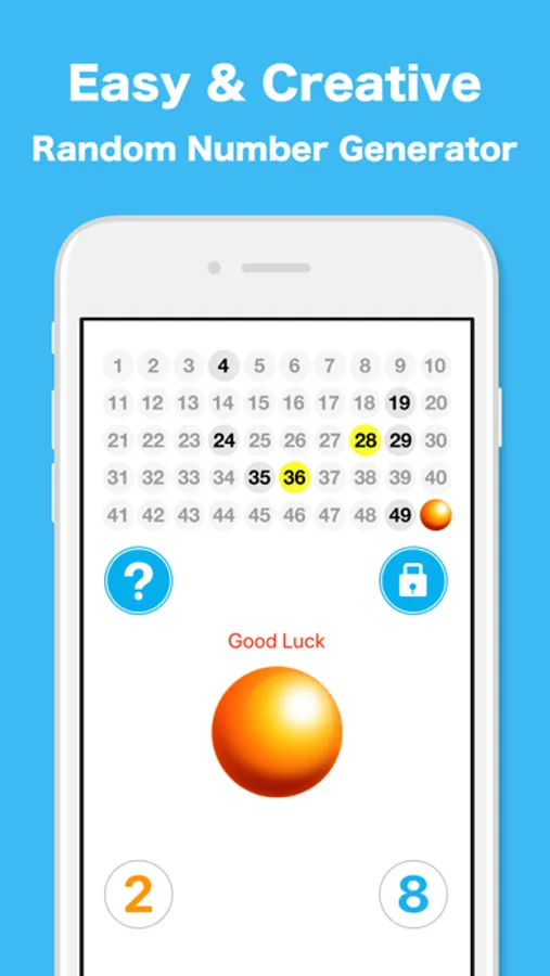 Have a hard time picking some numbers? Here is the solution for you. iPick49 helps you to randomly generate numbers among your favorite ones as well as supporting up to 5 special color numbers. You can use it on anything that it is decided by numbers, such as lucky draw, lottery... May the luck be with you!