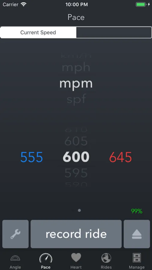 PACE: set a meters-per-minute, seconds-per-furlong, or miles-per-hour goal. Vert will give you feedback if you are below the goal, on target, or above the goal.