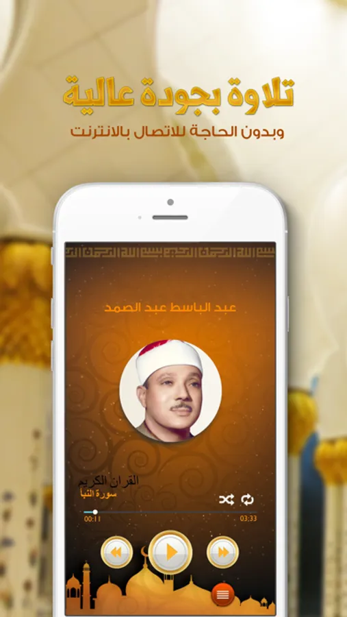 يحوي هذا التطبيق على صوت جميل من عبد الباسط عبد الصمد
