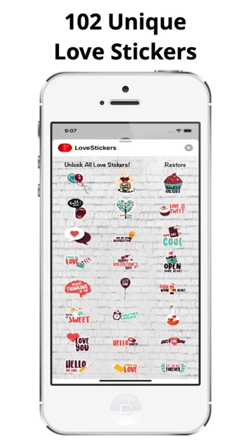 I have added 102 love stickers to this app which will allow you to express your love to your boyfriend, girlfriend, wife, husband or significant other uniquely.