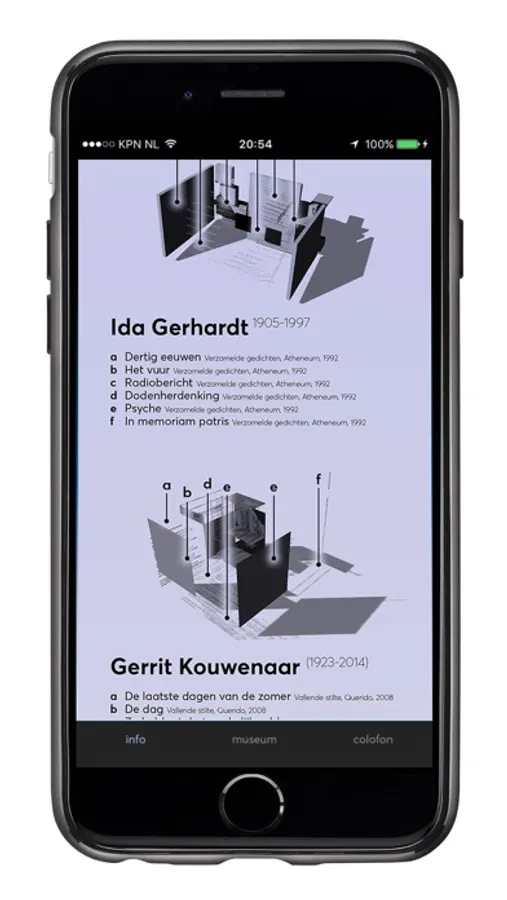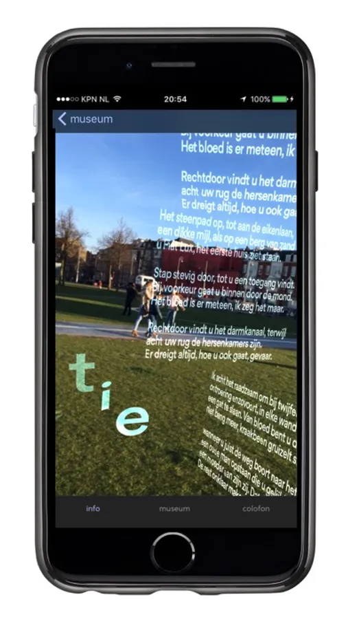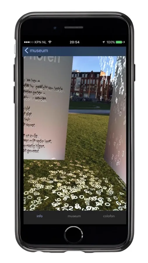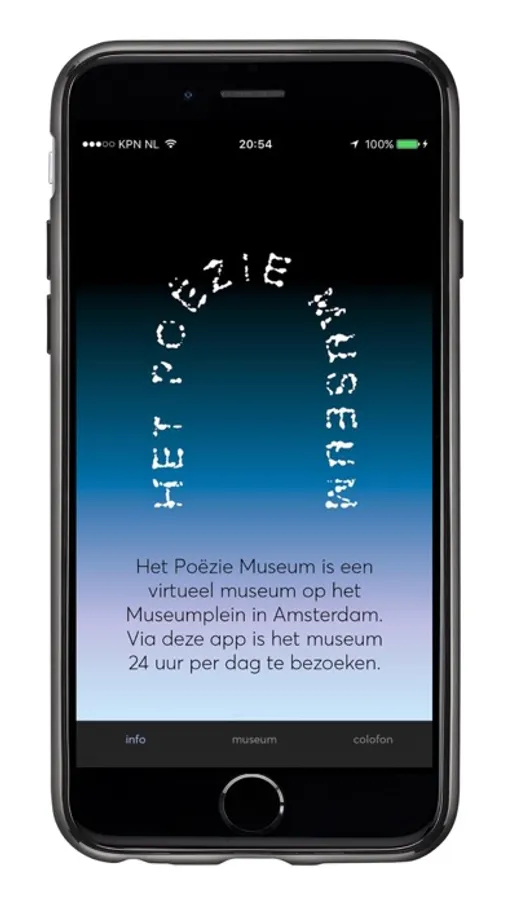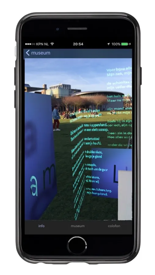 The Poëzie Museum is a virtual museum which is only visible on the Museumsquare in Amsterdam. It is initiated and realized by International Silence (Twan Janssen and Johannes Verwoerd). Using this app you can visit the museum 24 hours a day.