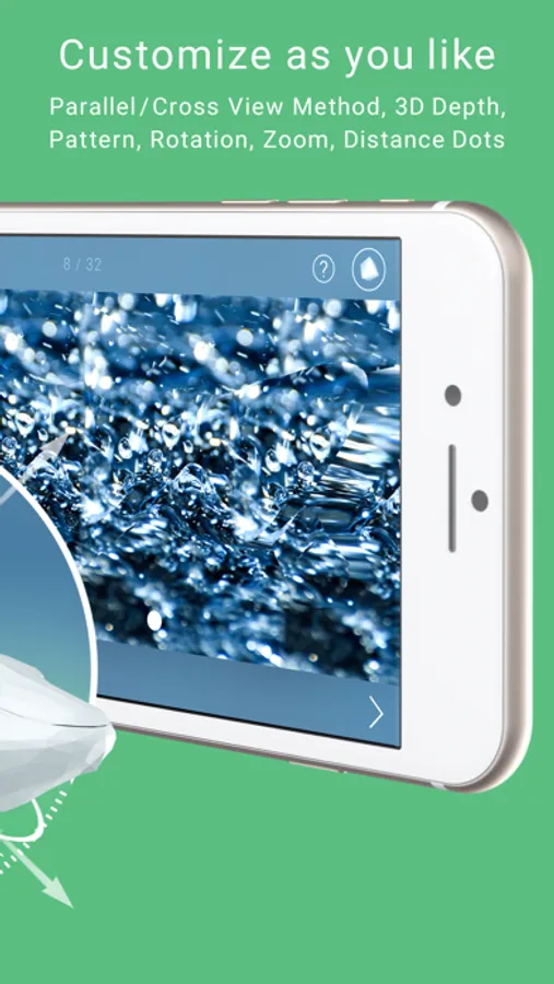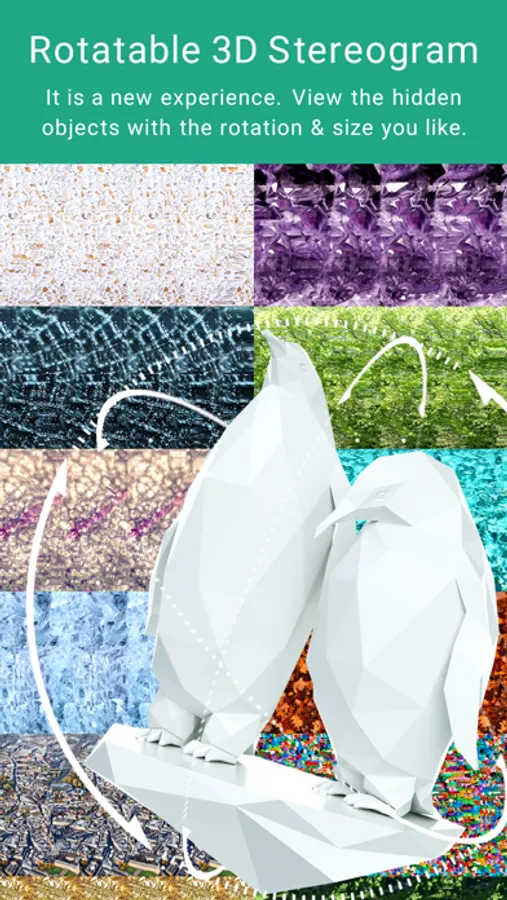 This is a app to view 3D images called the single-image stereogram, autostereogram or magic eye. You can see the stereoscopic images with the naked eye without using special goggles or glasses. See the screen with a gaze like looking far ( Parallel View Method ) or with crossed eyes ( Cross View Method ). The way to view is explained in detail in the app.