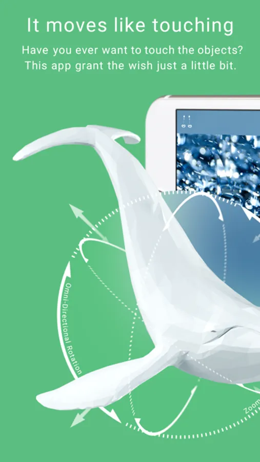 Rotation with one finger, scaling with pinch.