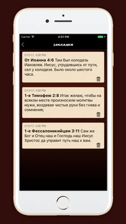 - Возможность делать неограниченное количество закладок на конкретный стих, одной из книг;