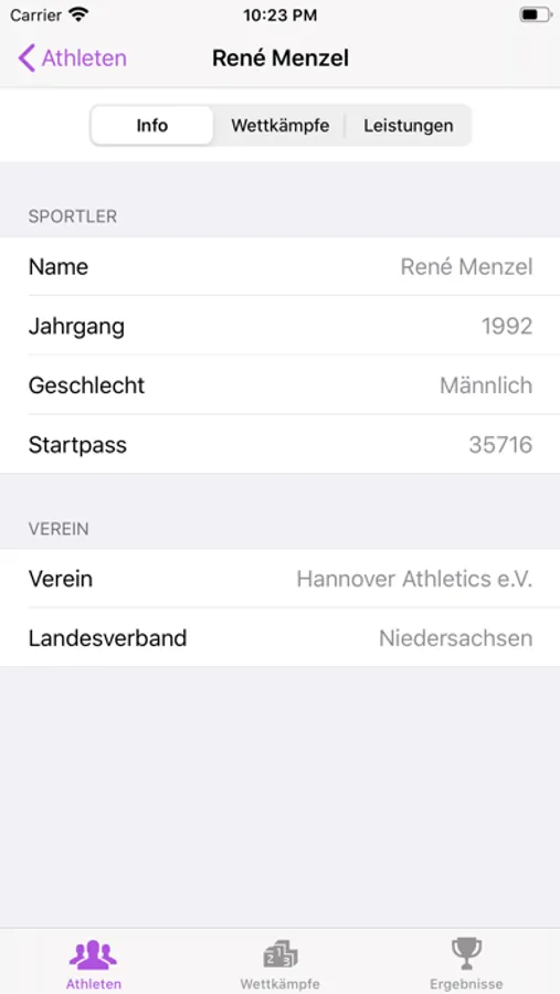 Suche und speichere Athleten und Wettkämpfe aus LADV.