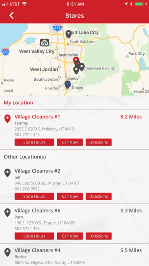 4) View a list of "Store Locations" for Village Cleaners and map out route directions between your iPhone and the selected location (requires enabling of iPhone Location Services).
