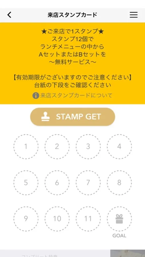 お店ご利用時にスタンプが貯まります。スタンプが貯まるとお店で使える特典チケットが発行されます。