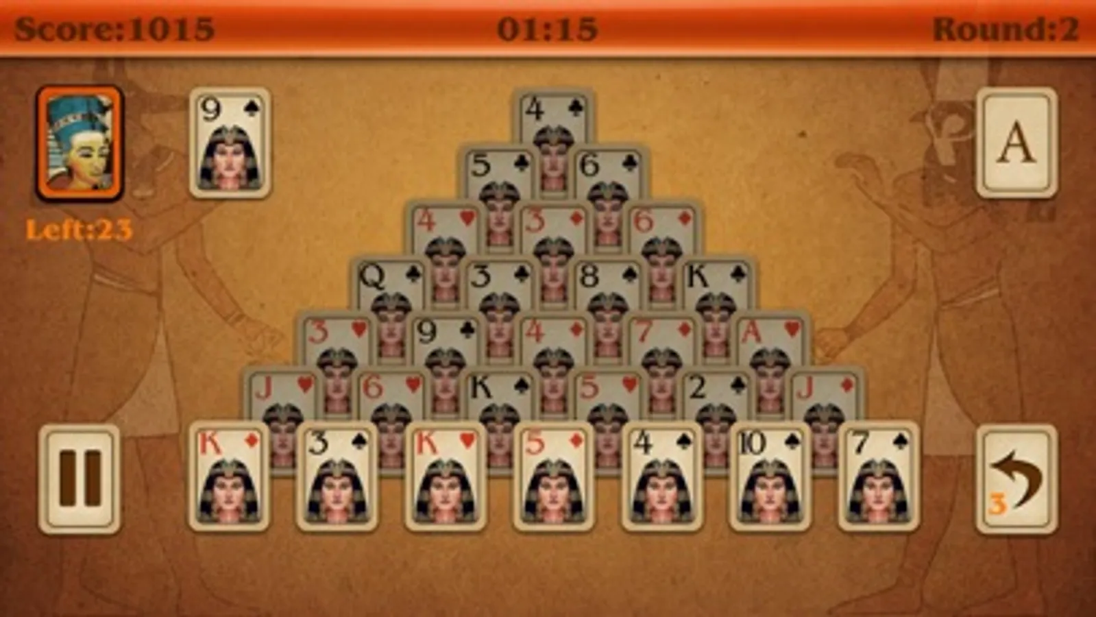 You need to match two cards as 13 to eliminate the cards. And there is a Pyramid which is full of cards. If you want to know how to play it, just try Alex Pyramid Solitaire.