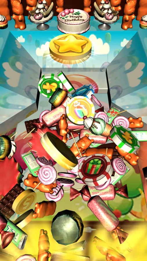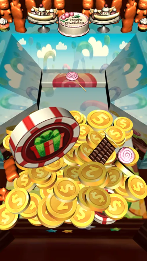 A LOT OF COINS & Candies in Candy Coins Dozer! Drop coins onto the pusher and move them all to the front of table to collect coins. More coins you collect - more chance to win special Chips & Prizes. And move coins careful not to push over the sides!
