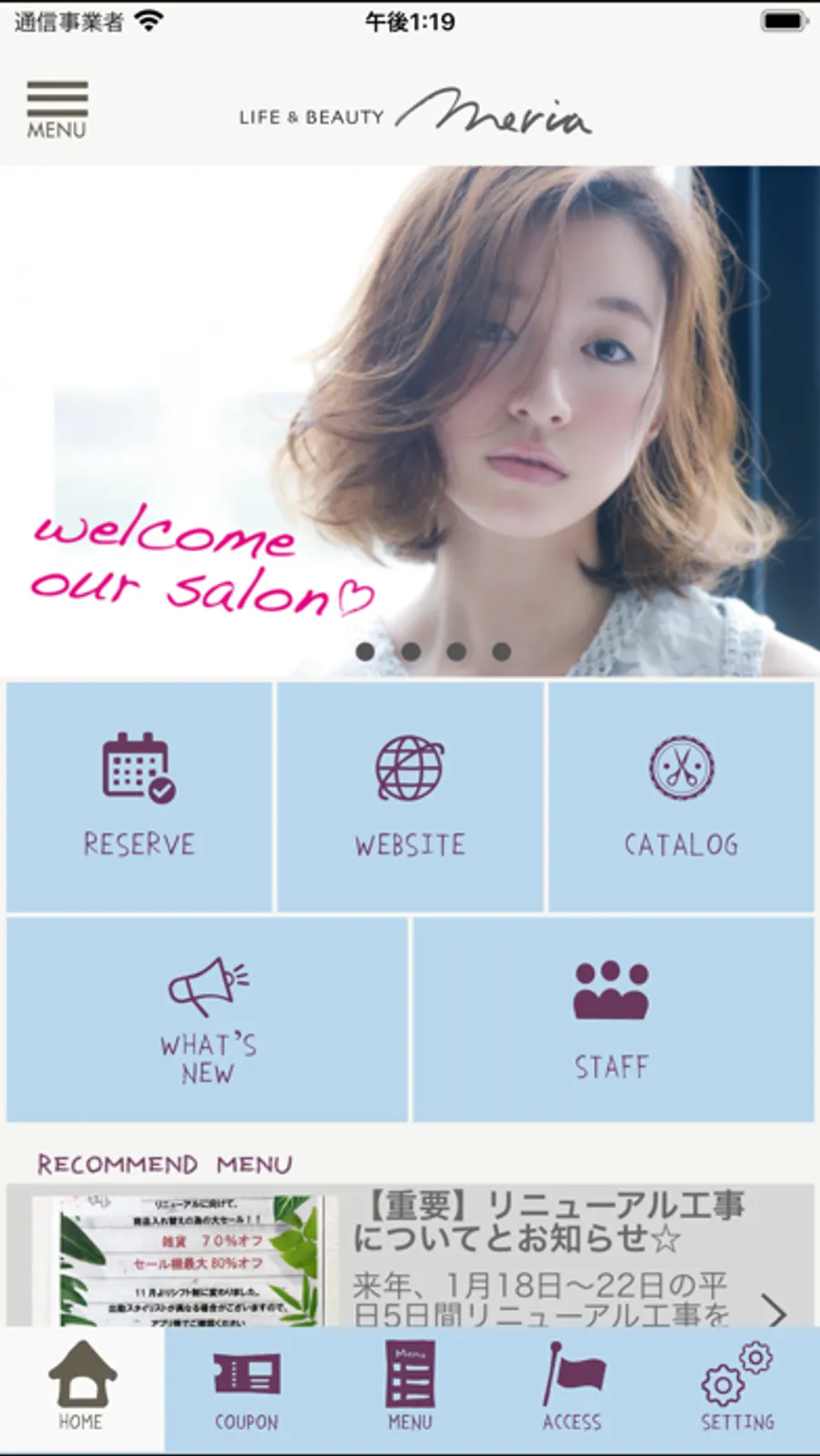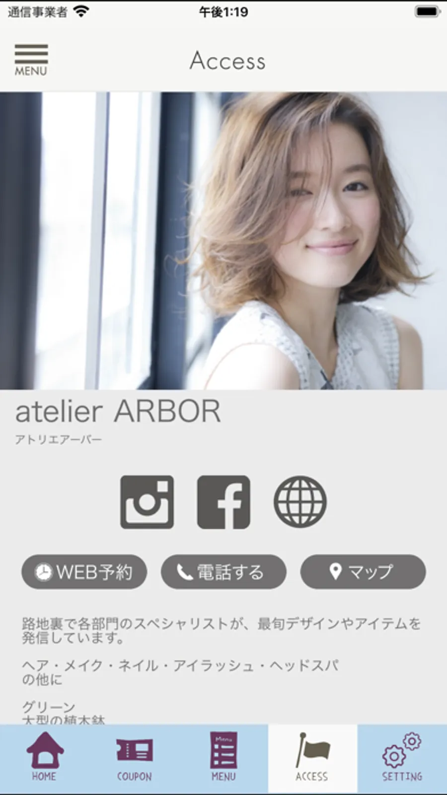 また、いつでもお手元のスマートフォンから、メニューやヘアスタイル、ご予約などが可能です。