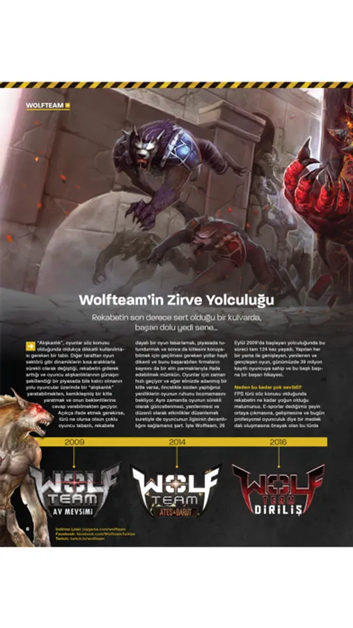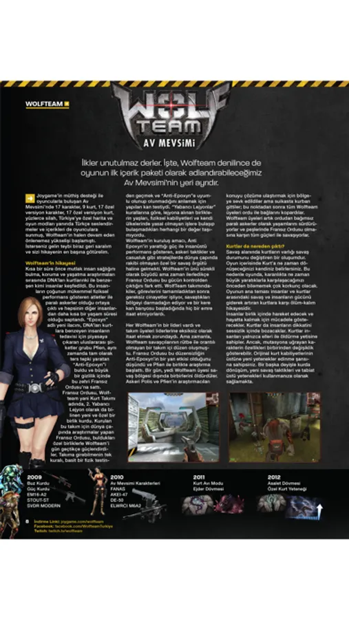 Netmarble'ın kült oyununun Türkiye serüveni, son bir yılda eklenen yenilikler, karakter ve silahların tanıtımı, popüler Wolfteam yayıncıları ile röportajlar, oyuna yeni başlayanlar için taktikler.