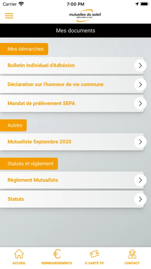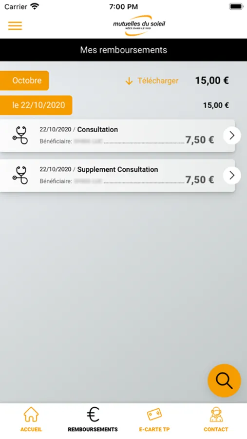 - Le suivi de vos remboursements avec la possibilité de télécharger vos décomptes