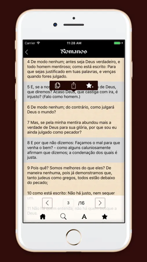 - Opção para aumentar e diminuir a fonte dos versículos através