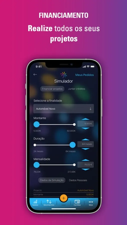 Subscrição online de pedidos de crédito: Crédito Pessoal, Crédito Automóvel e Crédito Consolidado;