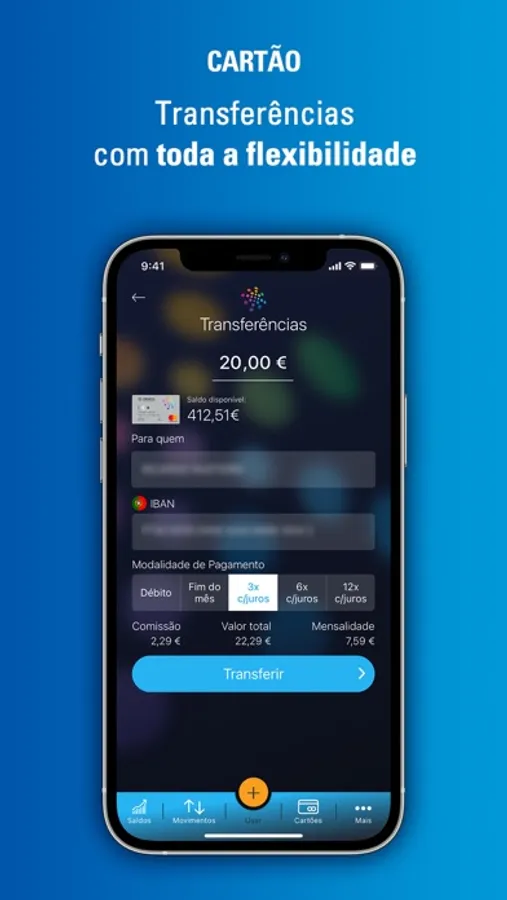 - Realizar transferências para a sua conta à ordem ou para qualquer outra conta bancária, em Portugal ou SEPA;