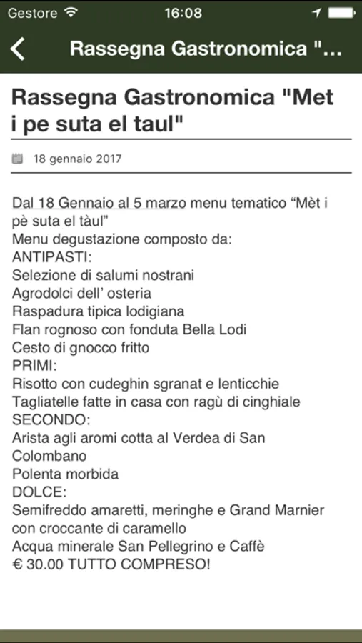 La cucina varia tra salumi selezionati, gnocco fritto e vari antipasti, risotti, paste fresche, filetti, tagliate e dolci di produzione propria.