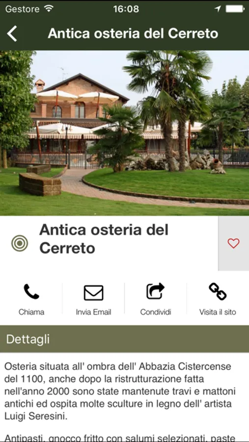 Ristorante situato all'ombra di un'Abbazia cistercense risalente all'anno 1100, anche dopo la ristrutturazione del 2000, conserva travi e mattoni antichi ed ospita sculture in pietra e legno di Luigi Soresini.