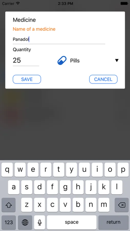 - creation of a medicine list — you can enter to the application names of drugs, their forms (tablets, capsules, etc.), number;