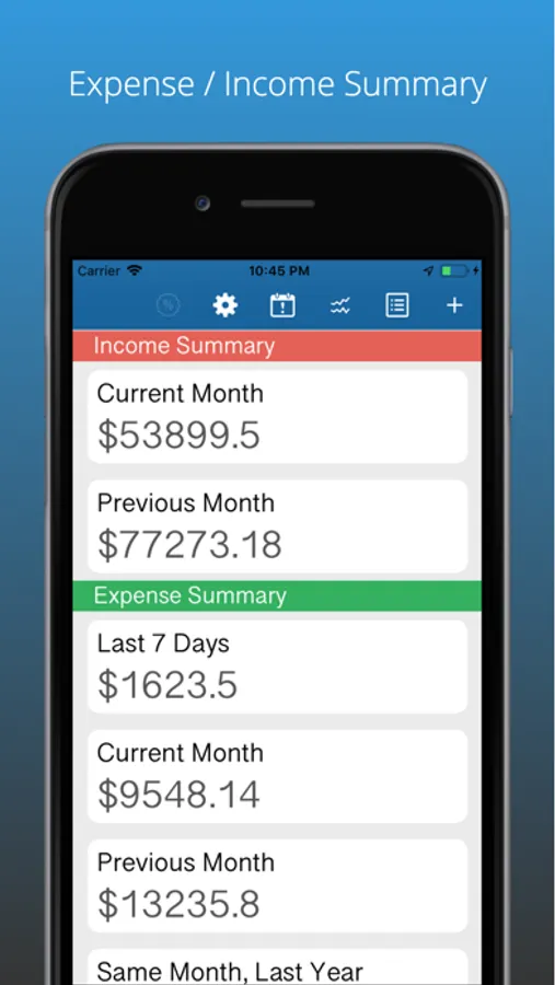 - Expense Summary : Last 7 Days,Current Month, Last Month, Same Month-Last Year and Category wise expense details