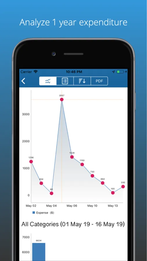 - Bar Graph : Track which day you spend most and get category wise expense graph