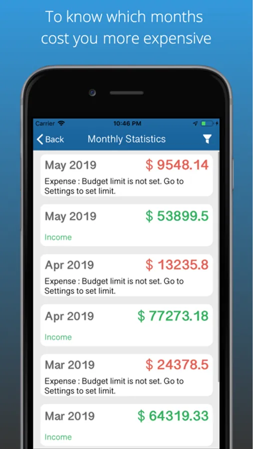 - Set Budget: Set Monthly Budget to track which month you saved some bucks OR you need to control in next month !!! (This is interesting feature to control your expense ;) )