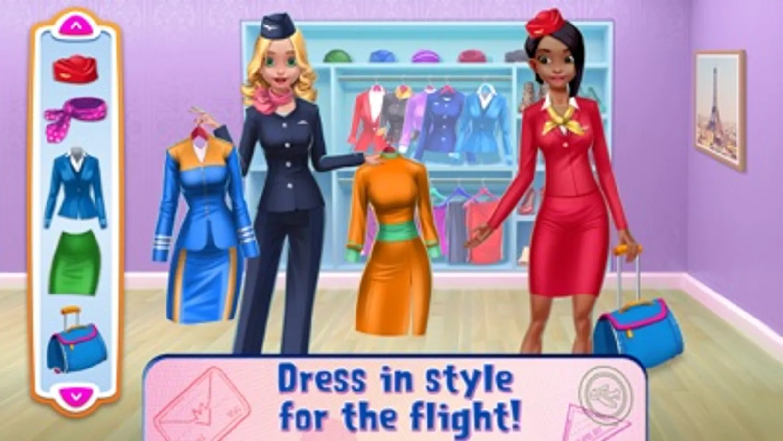 > Design and dress up in cool flight attendant uniforms and accessorize with a great scarf and shoes!