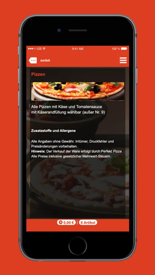 Perfekt Pizza heißt Sie Willkommen in seiner App.