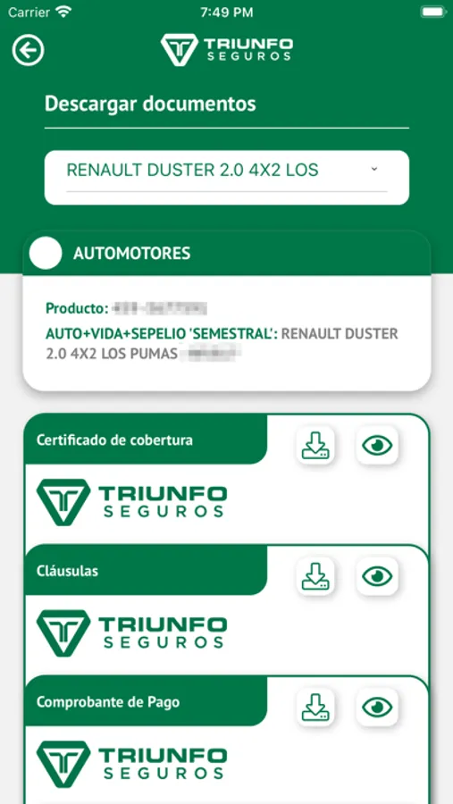 • Obtener tarjeta de circulación, certificado de pago, certificado de cobertura, tarjeta Mercosur y frente de póliza.
