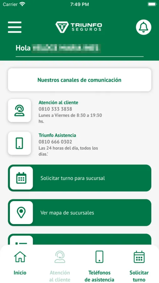 • Solicitud de auxilio mecánico, asistencia al viajero, asistencia médica y legal y asistencia al hogar.