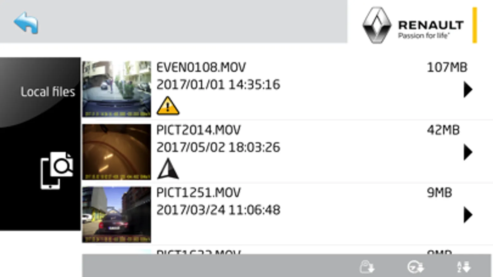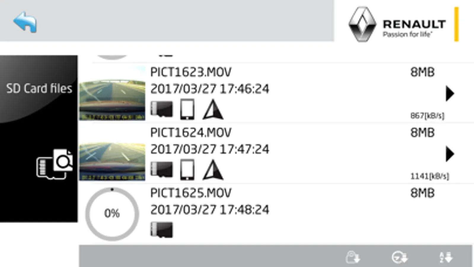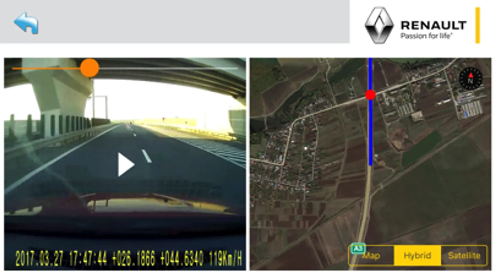 Renault DashCam App is dedicated to Renault approved DVR unit installed on Sandero, Logan, MCV and Duster vehicles (Renault part number 8201 679 620).
