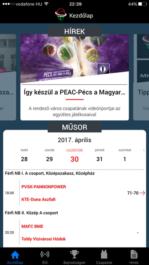 Az applikáció a Magyar Kosárlabdázók Országos Szövetségének hivatalos alkalmazása, ahol a szövetség weboldalán található tartalmakat: műsort, tabellákat és statisztikákat, a bajnokságok, csapatok és játékosok saját adatlapjait és eredményeit jeleníti meg. Ezen kívül a szövetség hivatalos híreit is meg lehet tekinteni. Rendelkezik egy élő modullal ahol az aktuálisan futó meccsek eredményeit közli.