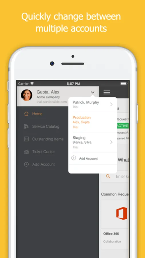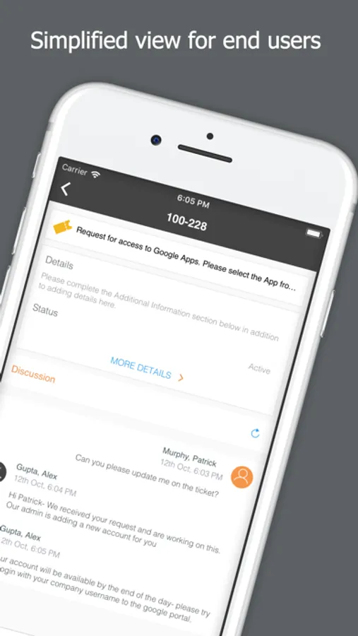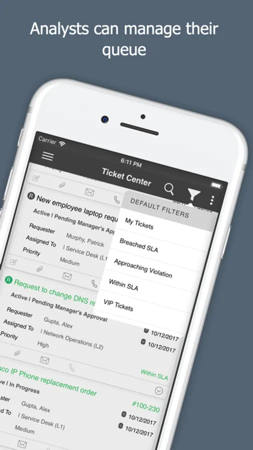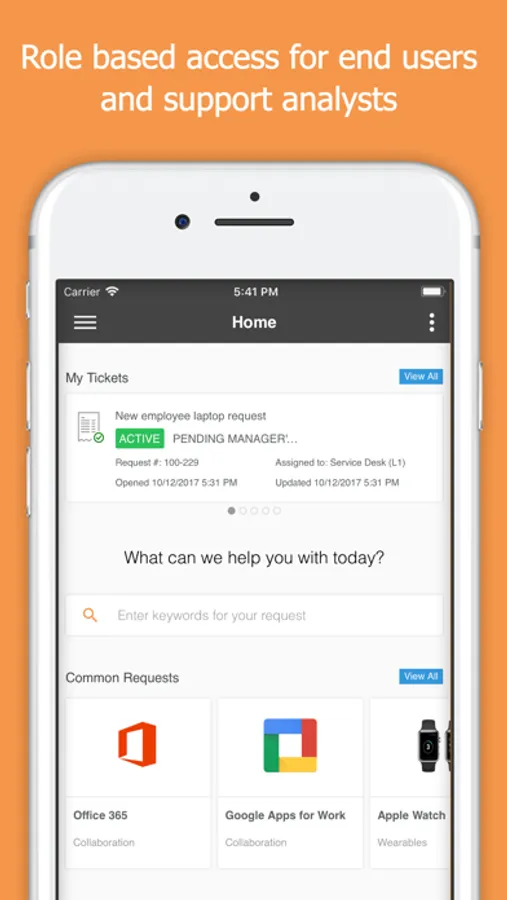 Using the Service Desk mobile app, users can obtain Service catalog, create a ticket and approve the ticket all from a mobile device.