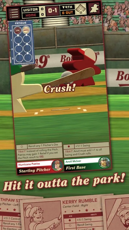 Bottom of the 9th is a strategic 2-player baseball game played with cards and dice. This faithful adaptation brings the fast-paced fun of the tabletop game to your iPhone and iPad! Choose your lineup from a pool of players with different strengths and abilities, outsmart your opponent in the stare-down, then roll the dice to trigger the action.