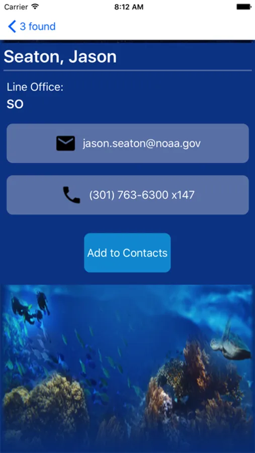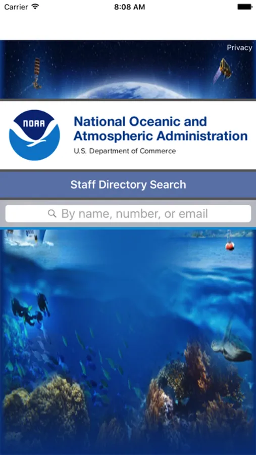 The NOAA Staff Directory allows you to find contact information for NOAA personnel. You can search by name, phone number, or e-mail and then directly contact or add them to your contacts list.