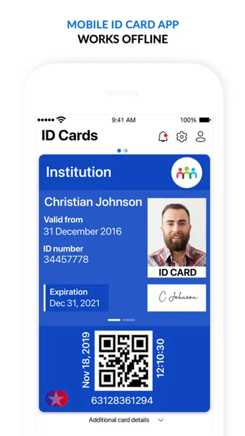ID123 is a mobile ID card application for schools, businesses and membership organizations. Administrators can use the cloud-based ID management system to securely issue and manage digital ID cards into this mobile app.