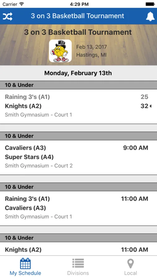 Follow our events and stay connected by viewing schedules, scores, brackets, and receiving notifications real-time.