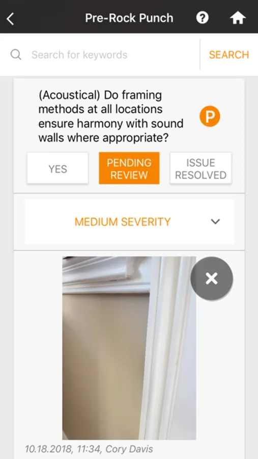 These questions are then aggregated by the specific Definable Features of Work within each project. Each question is then answered in the field and tracked with photos (unlimited!), notes (using voice dictation), severity of issue, party observed and reference fields for companies to connect each observation with other third party systems.