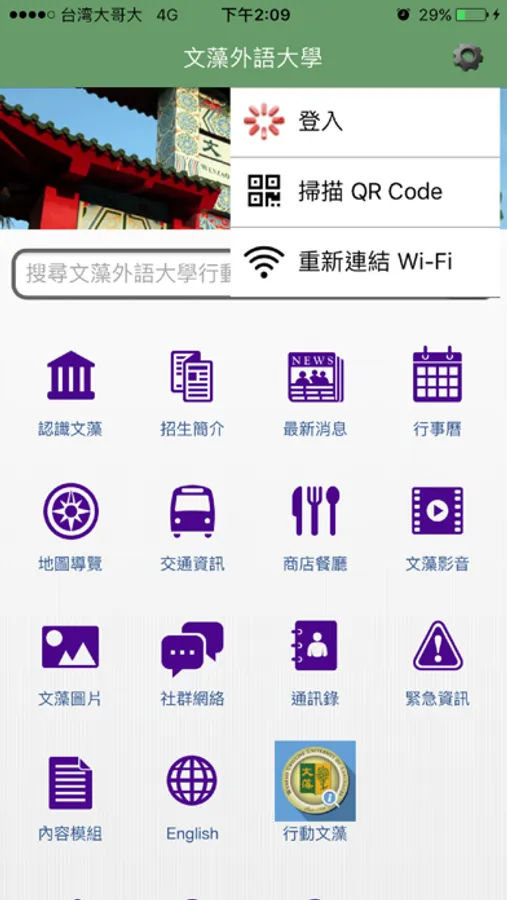 行動文藻為文藻外語大學校務資訊系統的行動化版本,供本校全體教職員工生使用。功能依登入身份而有所不同,支援的使用身份與對應的功能如下: