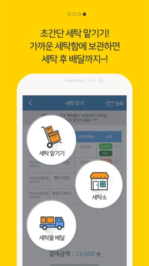 -세탁소에서 세탁물을 수거해 갈 때 푸쉬메시지로 수거 알림을 보내줍니다.