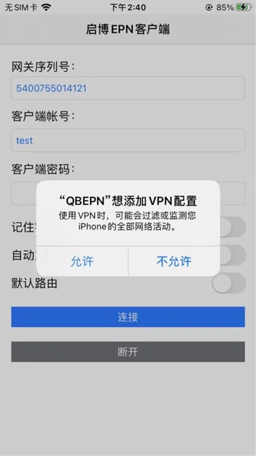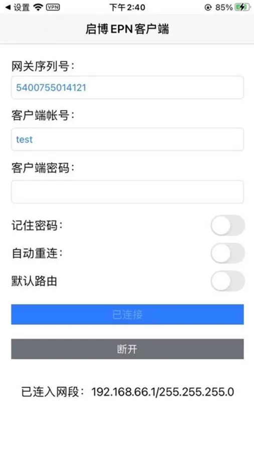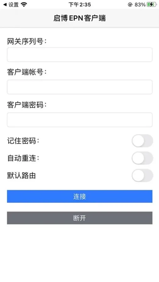 启博EPN客户端软件,配套启博SD-WAN(VPN)网关一起使用,连接时输入要连接的要连接的网关序列号、用户名、密码,这些信息都可以向公司IT管理人员索取。使用过程中遇到技术问题,可以访问我们公司网址 http://www.vpnsoft.net 或致电 400 618 3858 咨询。